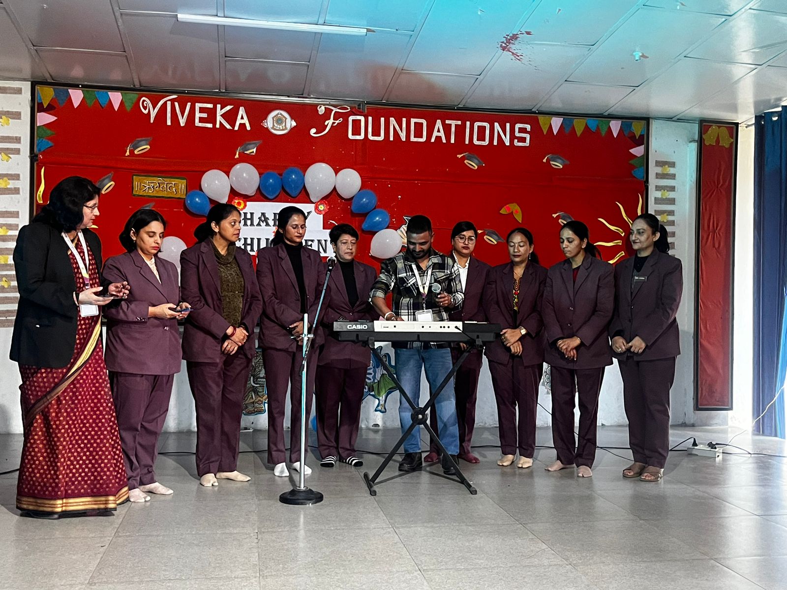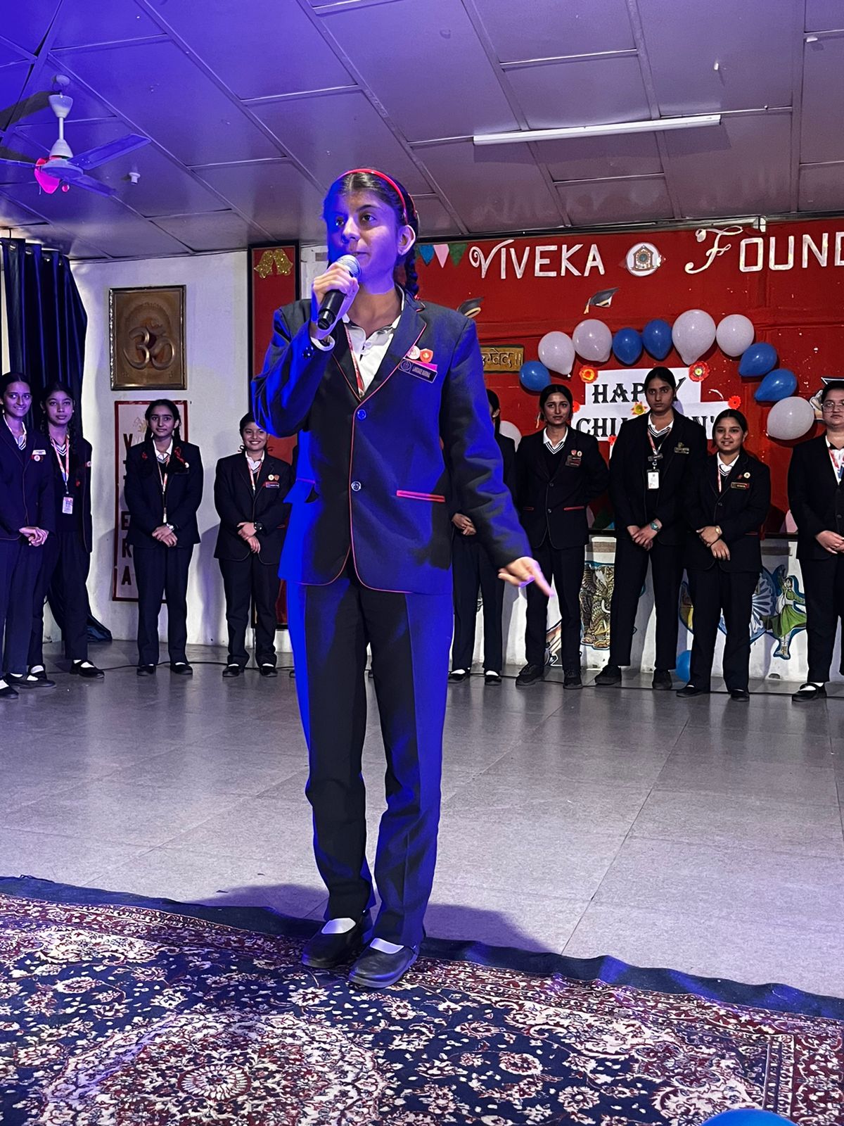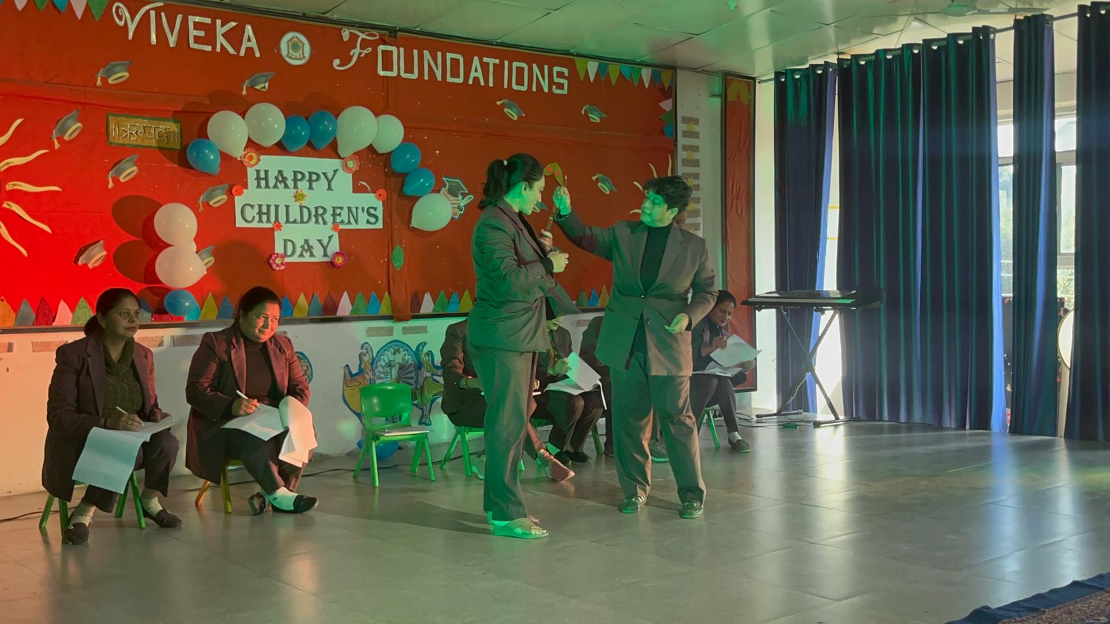 Viveka Foundations School, Mansimbal, celebrated Children’s Day with immense joy, excitement, and warmth to honour the spirit, innocence, and brilliance of childhood. The programme began on an auspicious note with the lighting of the ceremonial lamp by the Hon’ble Director Ma’am, Principal Ma’am, and the school appointees. This was followed by a graceful Saraswati Vandana presented by the teachers, invoking blessings for wisdom, learning, and harmony.