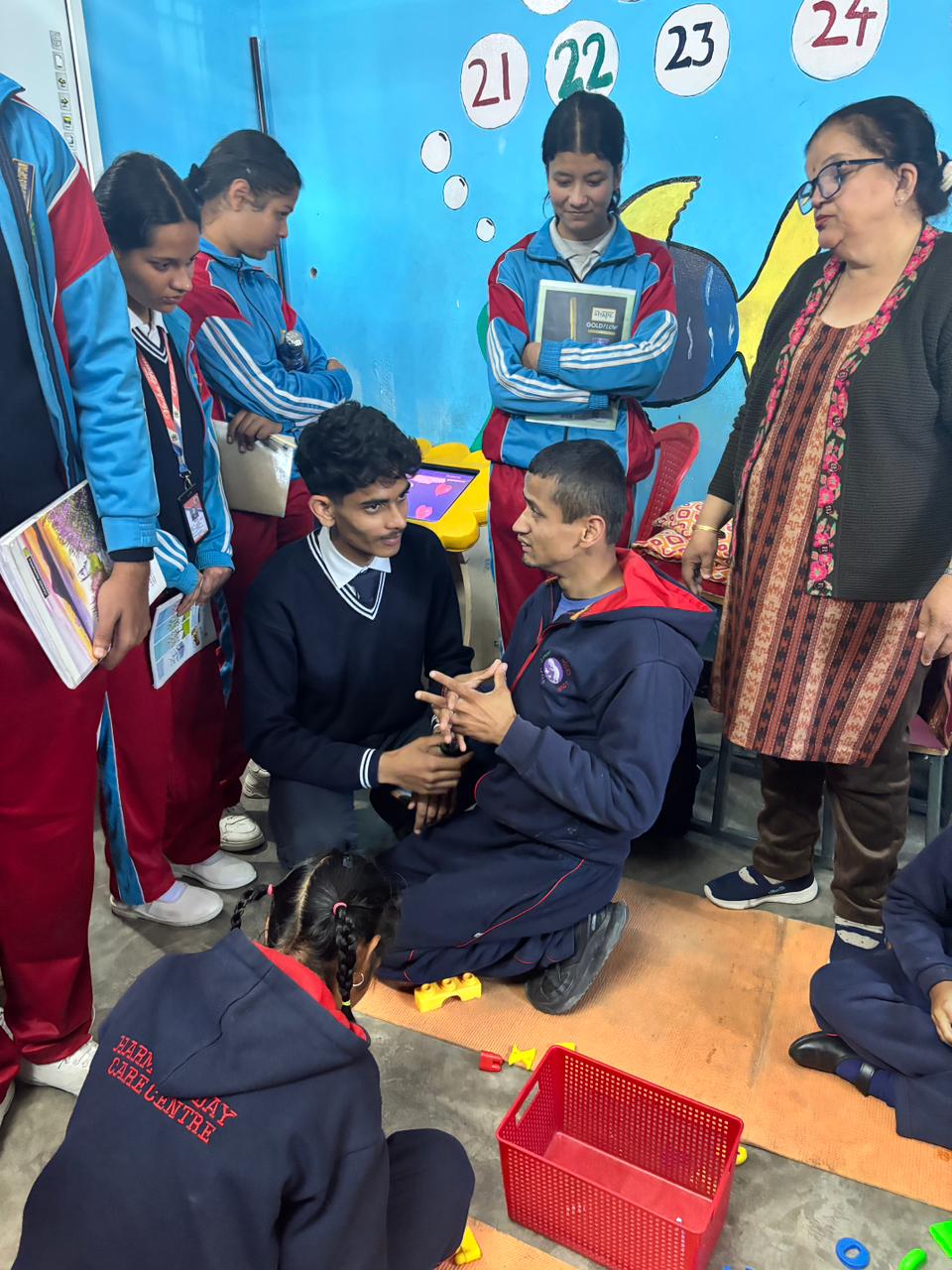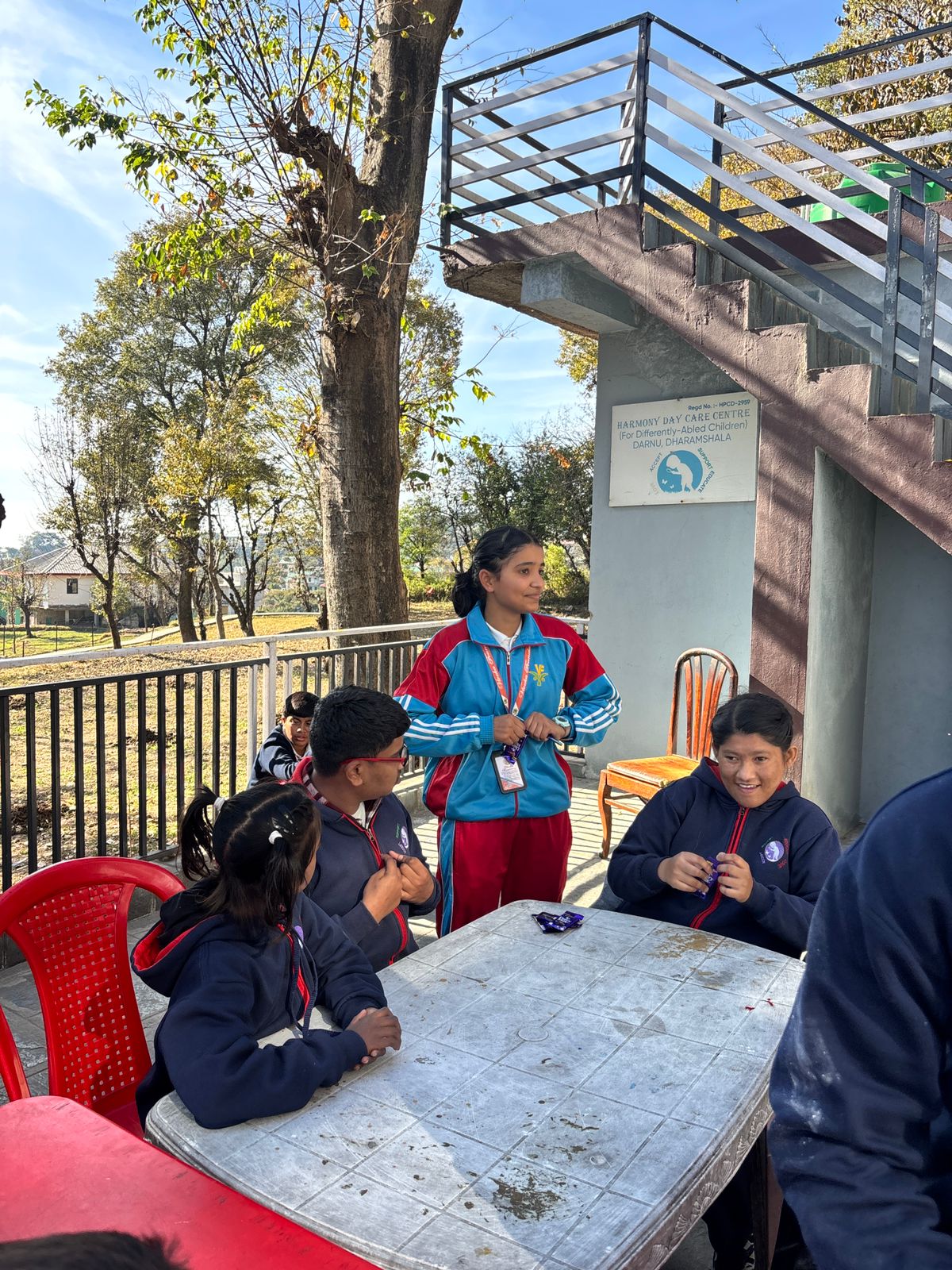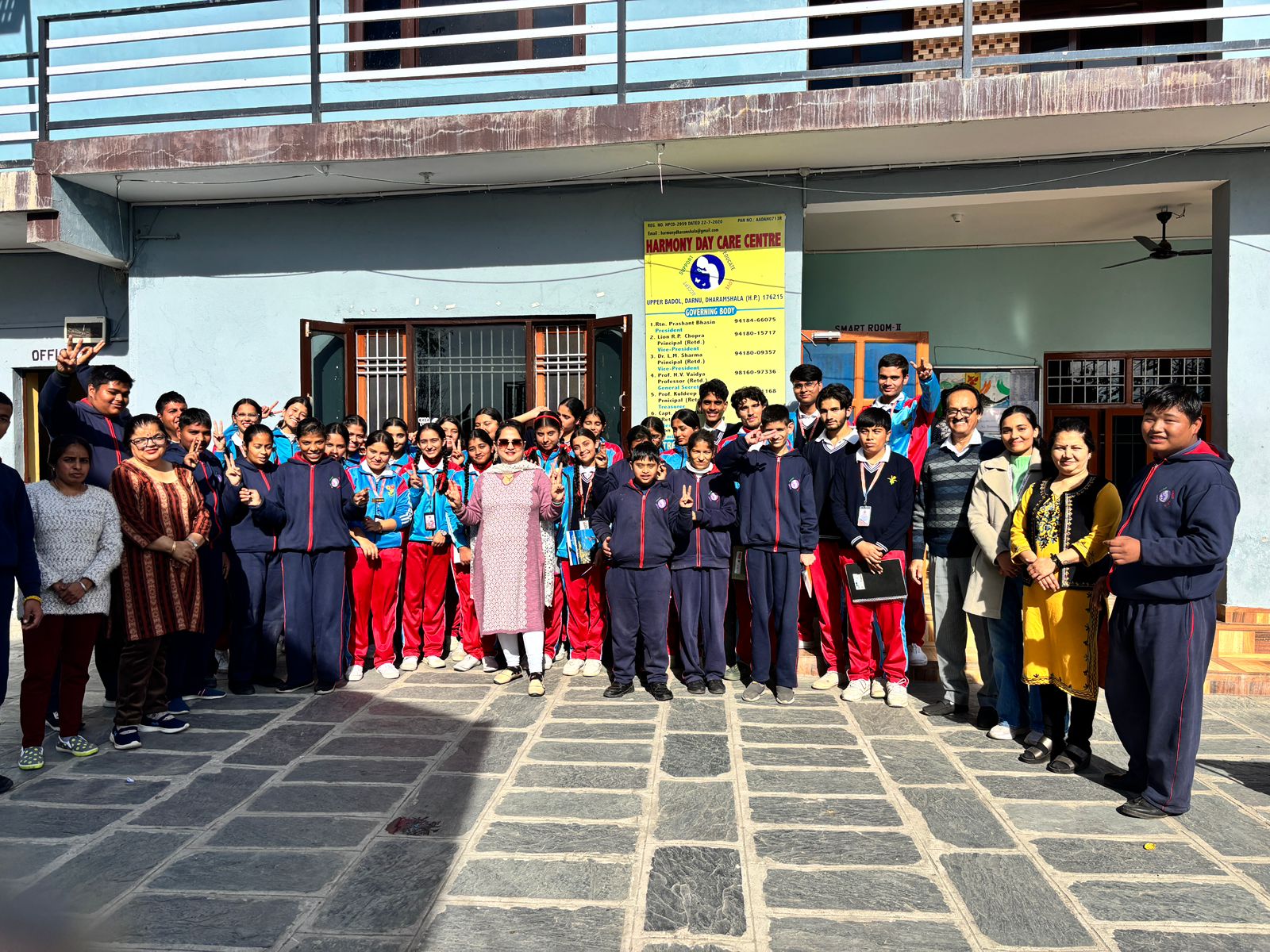The Psychology students of Classes XI and XII, accompanied by Miss Arsha Rani (PGT Psychology cum Counselor), visited Harmony Day Care Center for Children with Disabilities, Dharamsala, as part of an educational visit. The visit provided students with an opportunity to observe and understand different disabilities through real-life interaction and practical exposure.