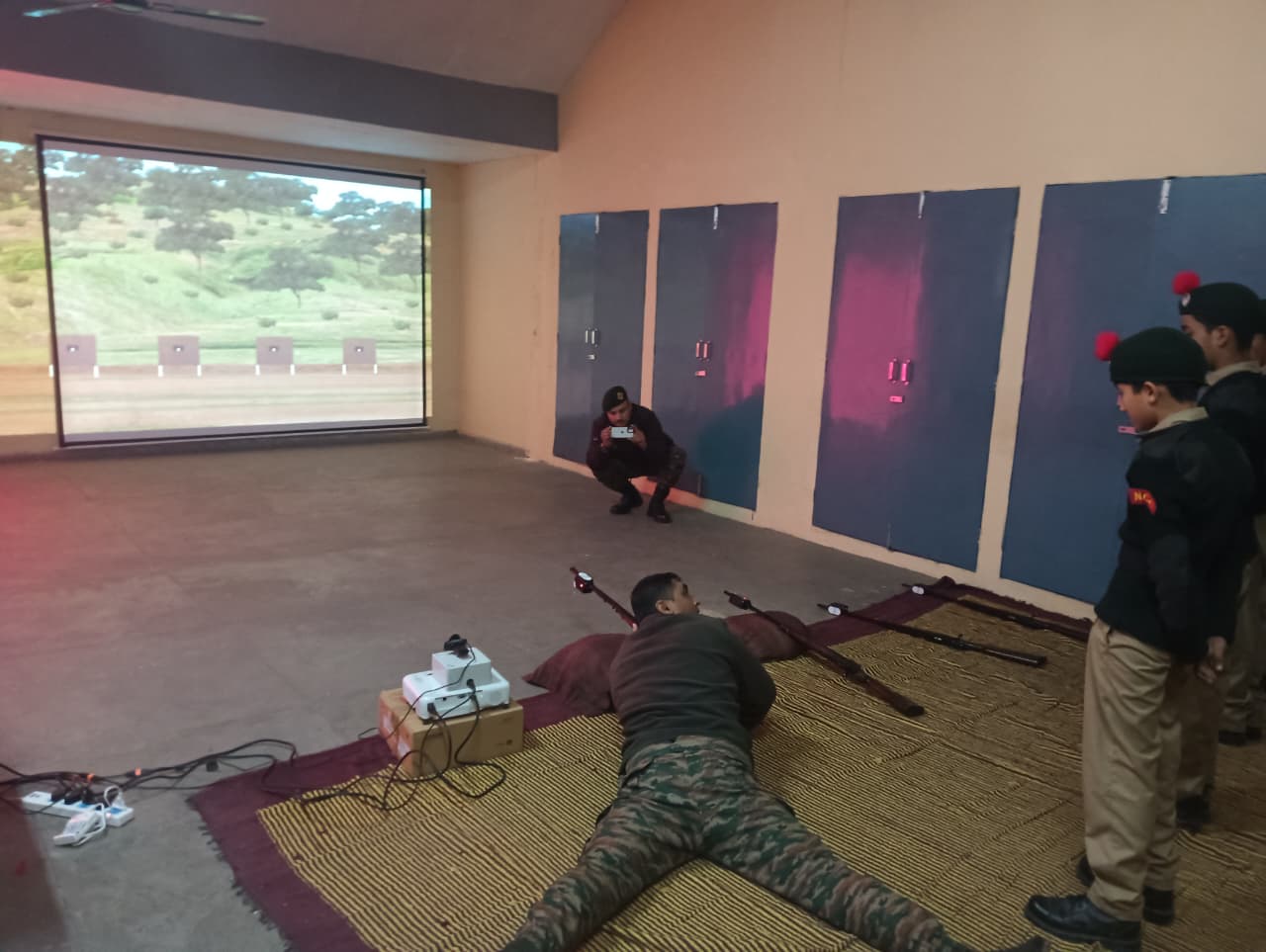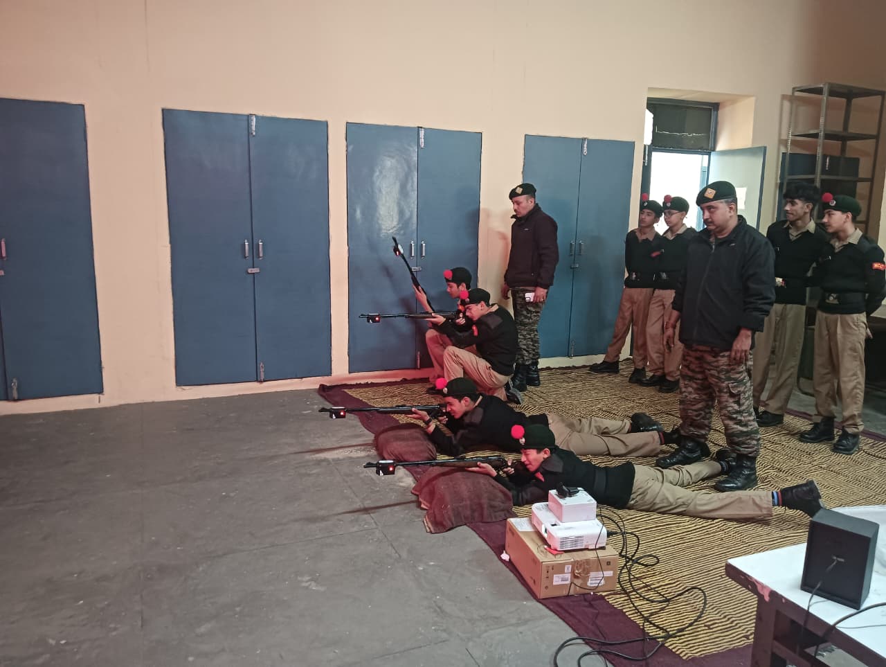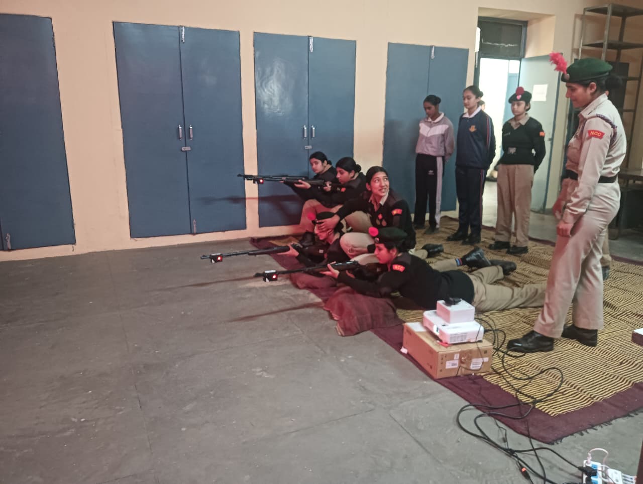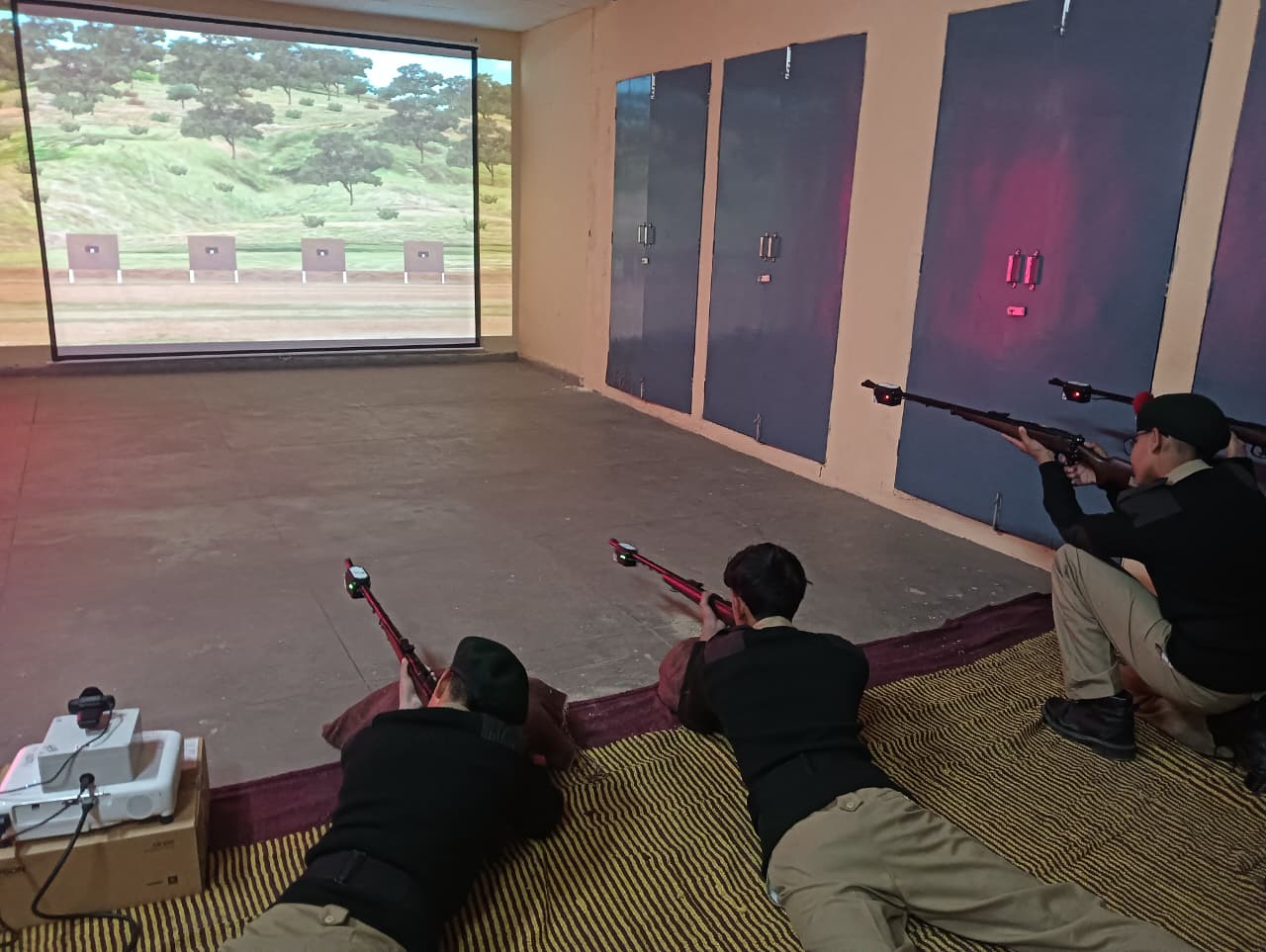 A total of *23 First Year NCC Cadets* participated enthusiastically in the training. The session aimed to familiarize cadets with *basic firing positions, weapon handling, aiming techniques, and trigger control* using the simulator system. Cadets practiced firing in different positions such as *prone and kneeling,* under the close supervision of NCC staff and instructors.