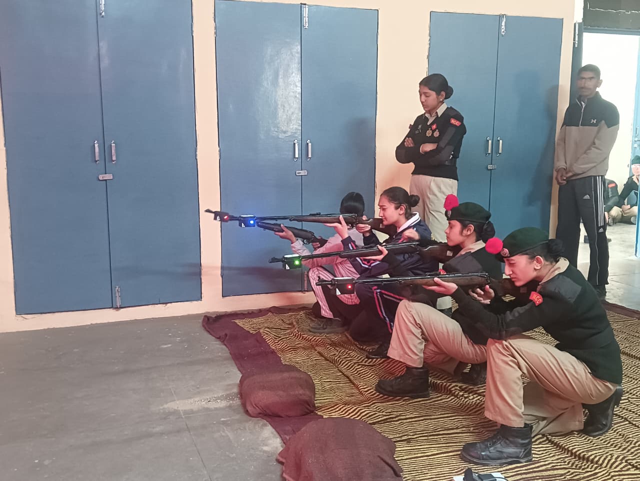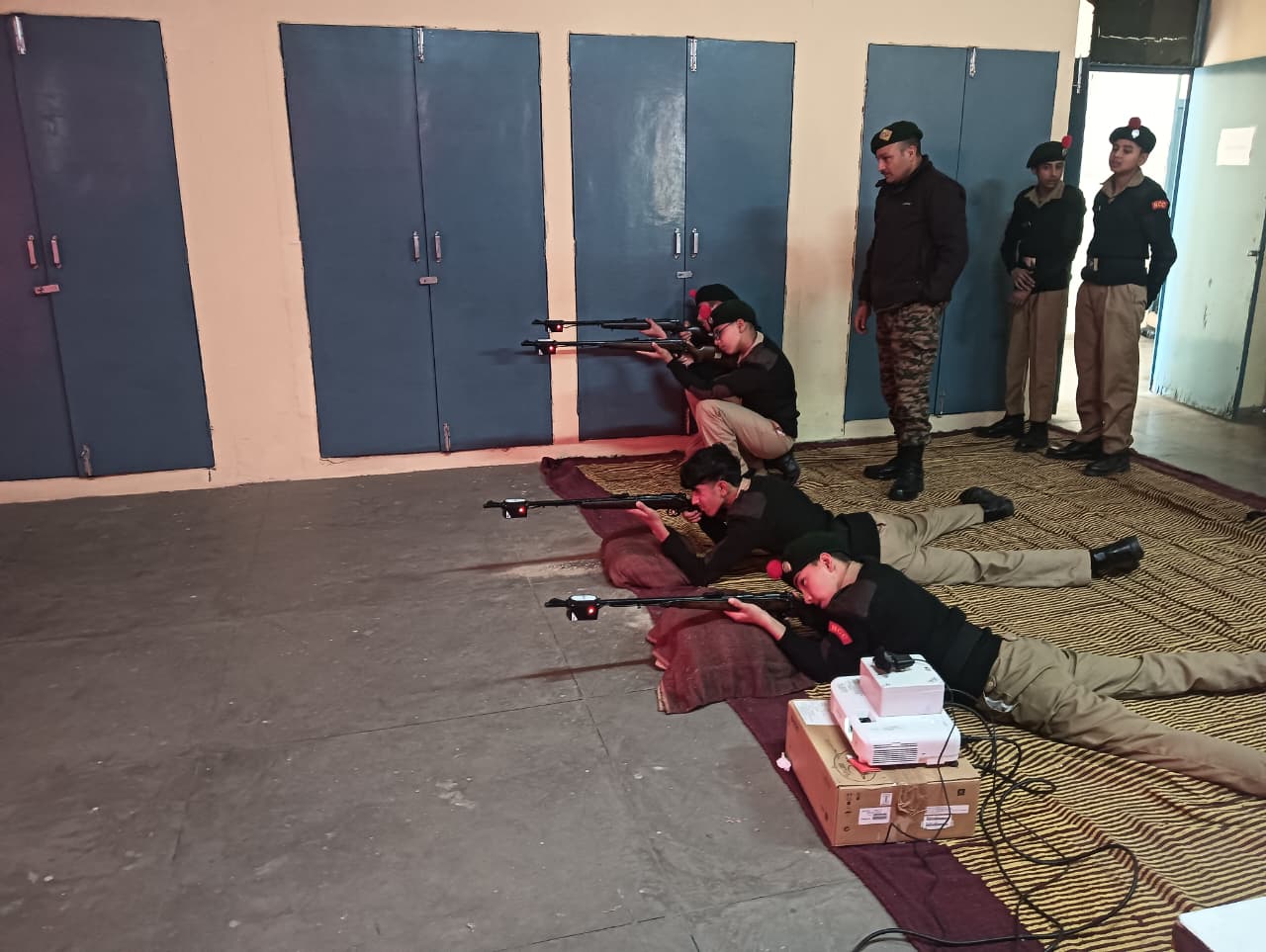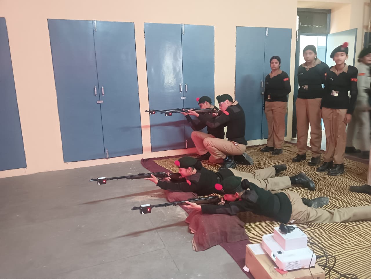 A total of *23 First Year NCC Cadets* participated enthusiastically in the training. The session aimed to familiarize cadets with *basic firing positions, weapon handling, aiming techniques, and trigger control* using the simulator system. Cadets practiced firing in different positions such as *prone and kneeling,* under the close supervision of NCC staff and instructors.
