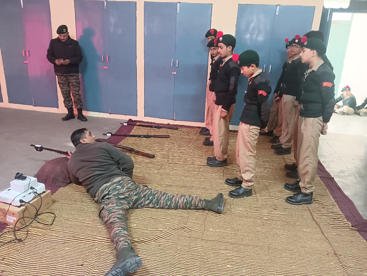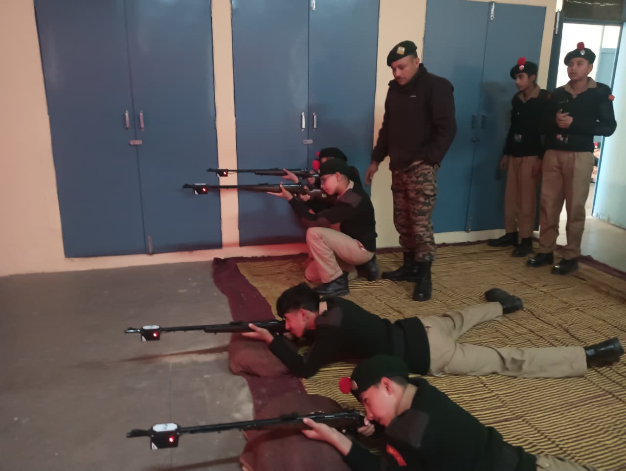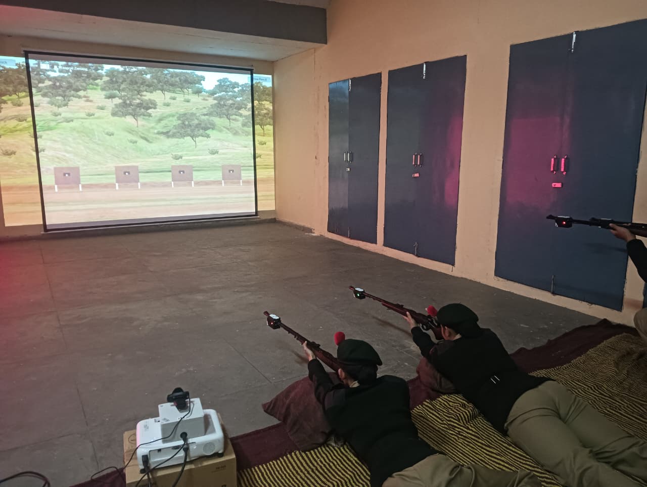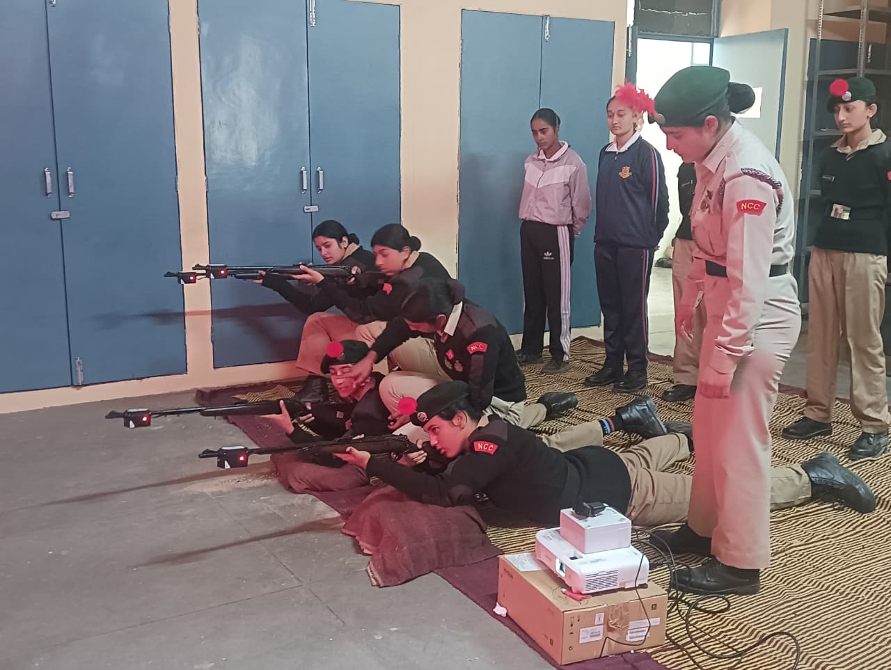 A total of *23 First Year NCC Cadets* participated enthusiastically in the training. The session aimed to familiarize cadets with *basic firing positions, weapon handling, aiming techniques, and trigger control* using the simulator system. Cadets practiced firing in different positions such as *prone and kneeling,* under the close supervision of NCC staff and instructors.