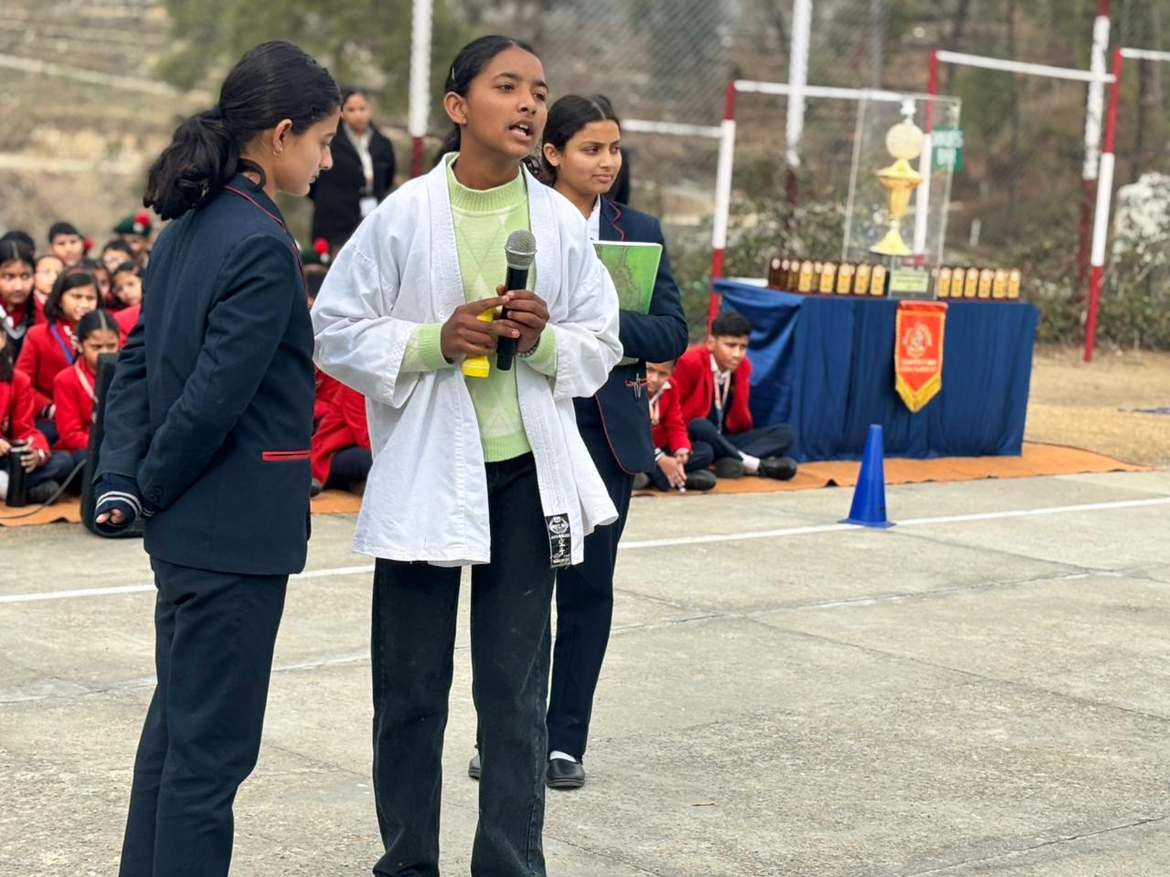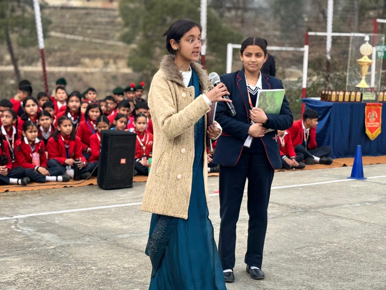 The NCC cadets showcased exemplary discipline and dedication through a well-coordinated parade, marching with precision and pride. Students from all four houses—Aryabhatt, Chaitanya, Major Somnath Sharma, and Rabindranath Tagore—presented soulful patriotic songs that infused the atmosphere with energy and togetherness. This was followed by a speech competition in which students eloquently expressed the significance of Republic Day and reflected on the values enshrined in the Indian Constitution.