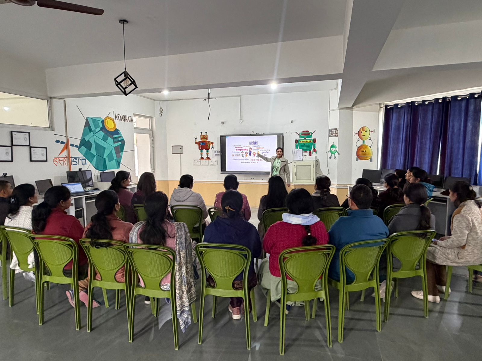 A session on **Soft Skills for Teachers** was conducted by **Ms. Arsha, PGT Psychology and Counsellor from Viveka Foundations** for the teaching staff. The session focused on the importance of understanding students’ diverse learning abilities and responding with empathy, encouragement, and balanced teaching practices.