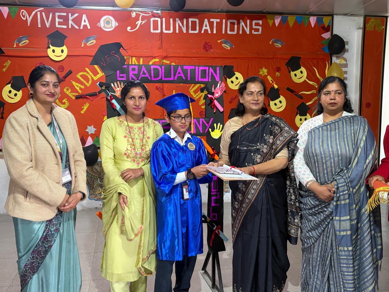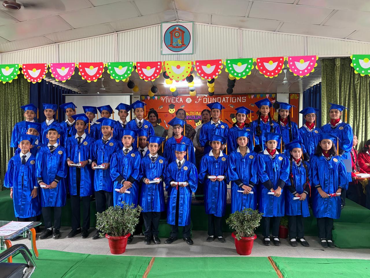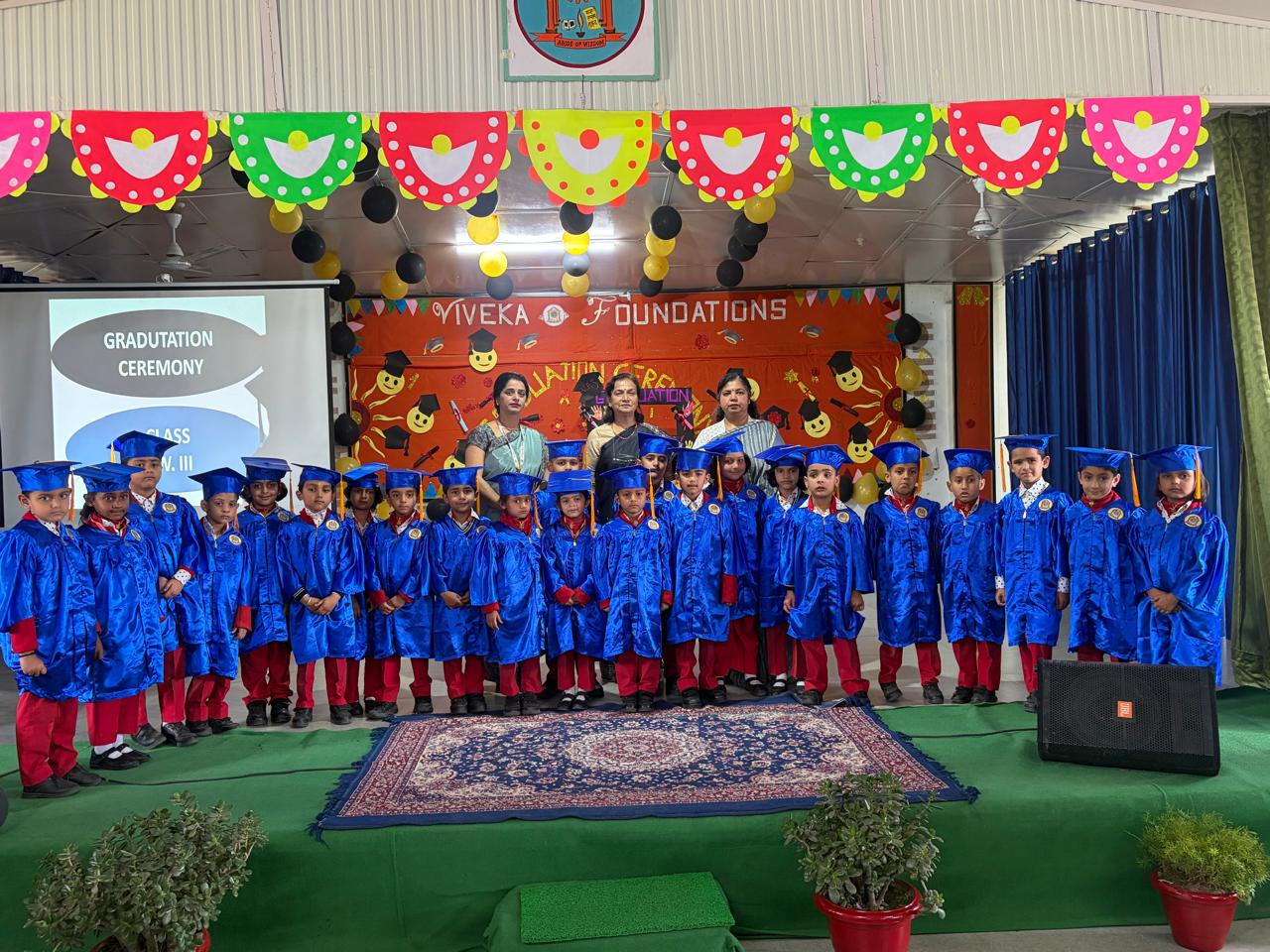 The Graduation Ceremony for Playway III, Class V, and Class VIII was conducted with great enthusiasm and dignity at Viveka Foundations School. The event was graced by the presence of the Honourable Director Ma’am, respected Principal, and esteemed parents, whose presence added warmth and significance to the occasion.