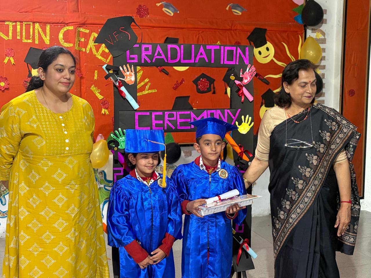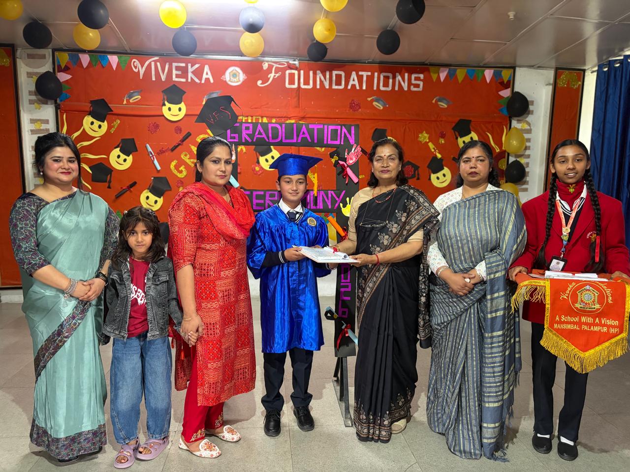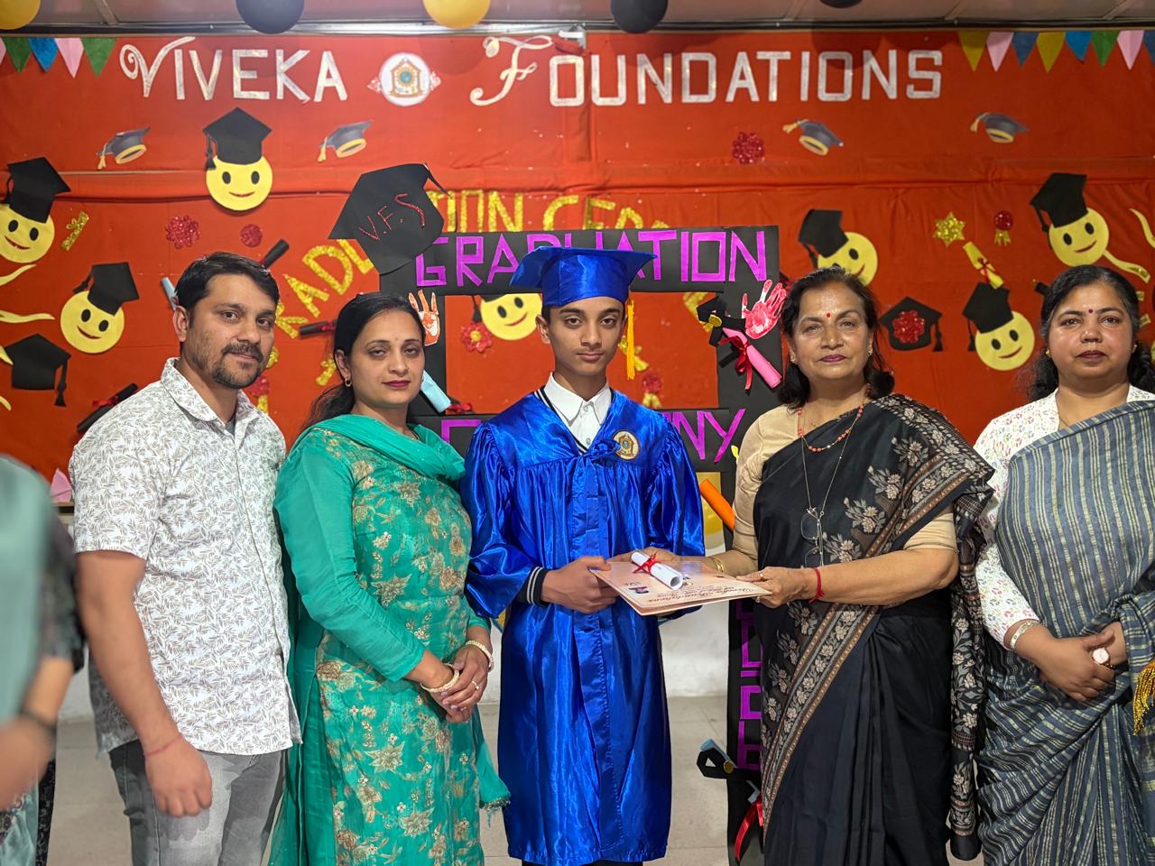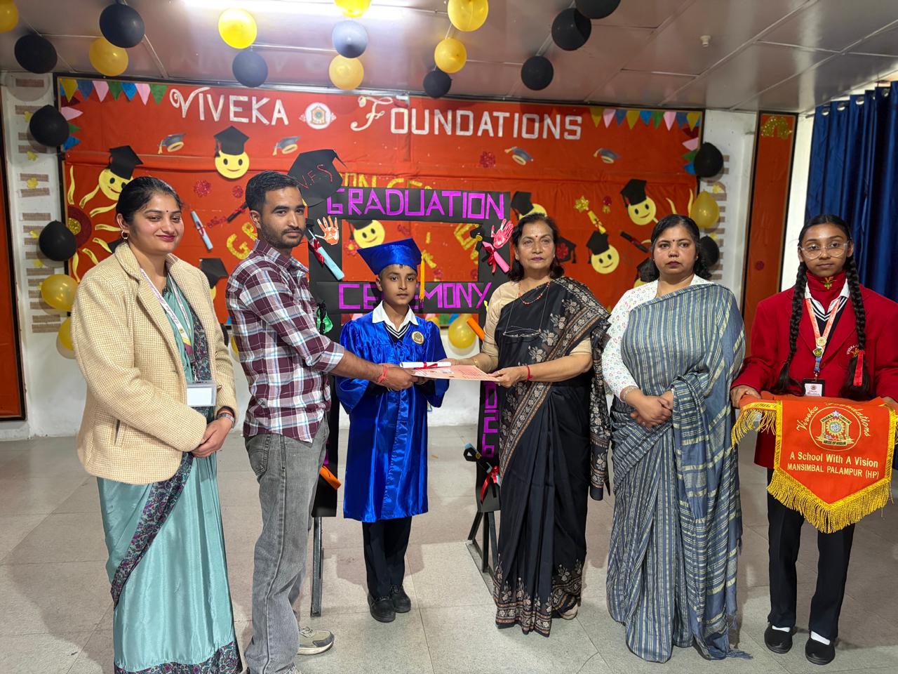 The Graduation Ceremony for Playway III, Class V, and Class VIII was conducted with great enthusiasm and dignity at Viveka Foundations School. The event was graced by the presence of the Honourable Director Ma’am, respected Principal, and esteemed parents, whose presence added warmth and significance to the occasion.