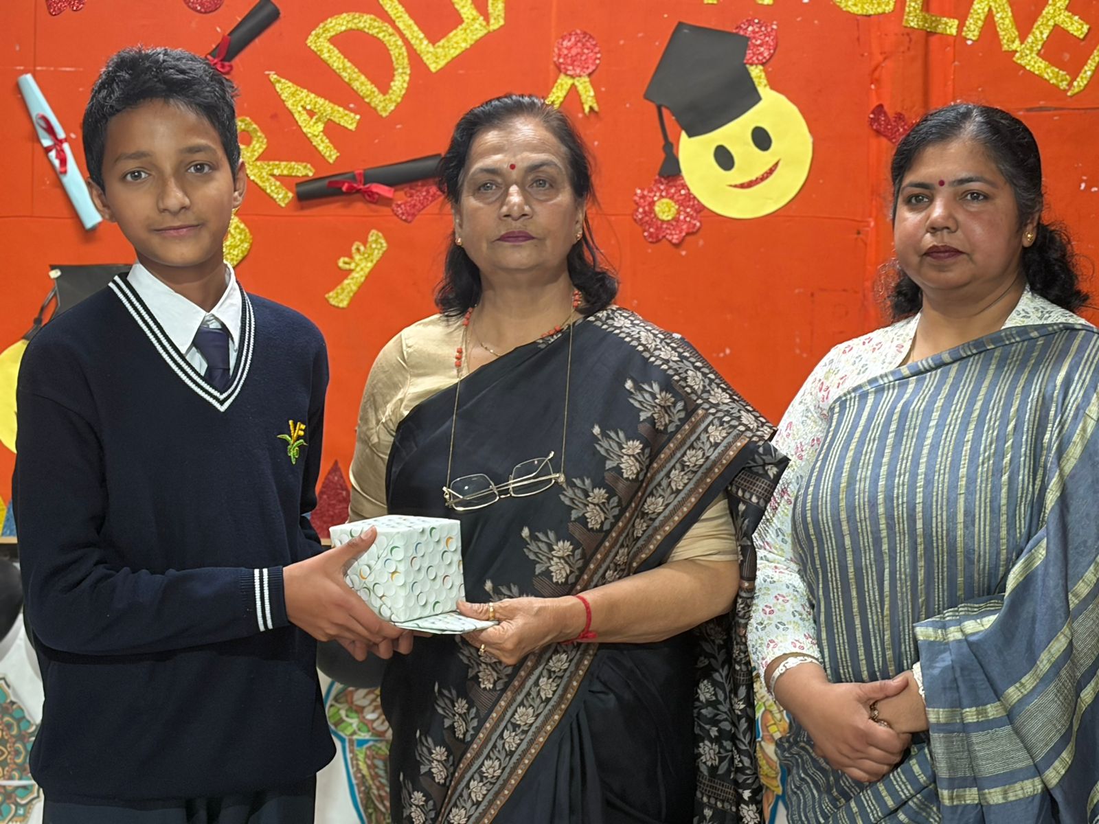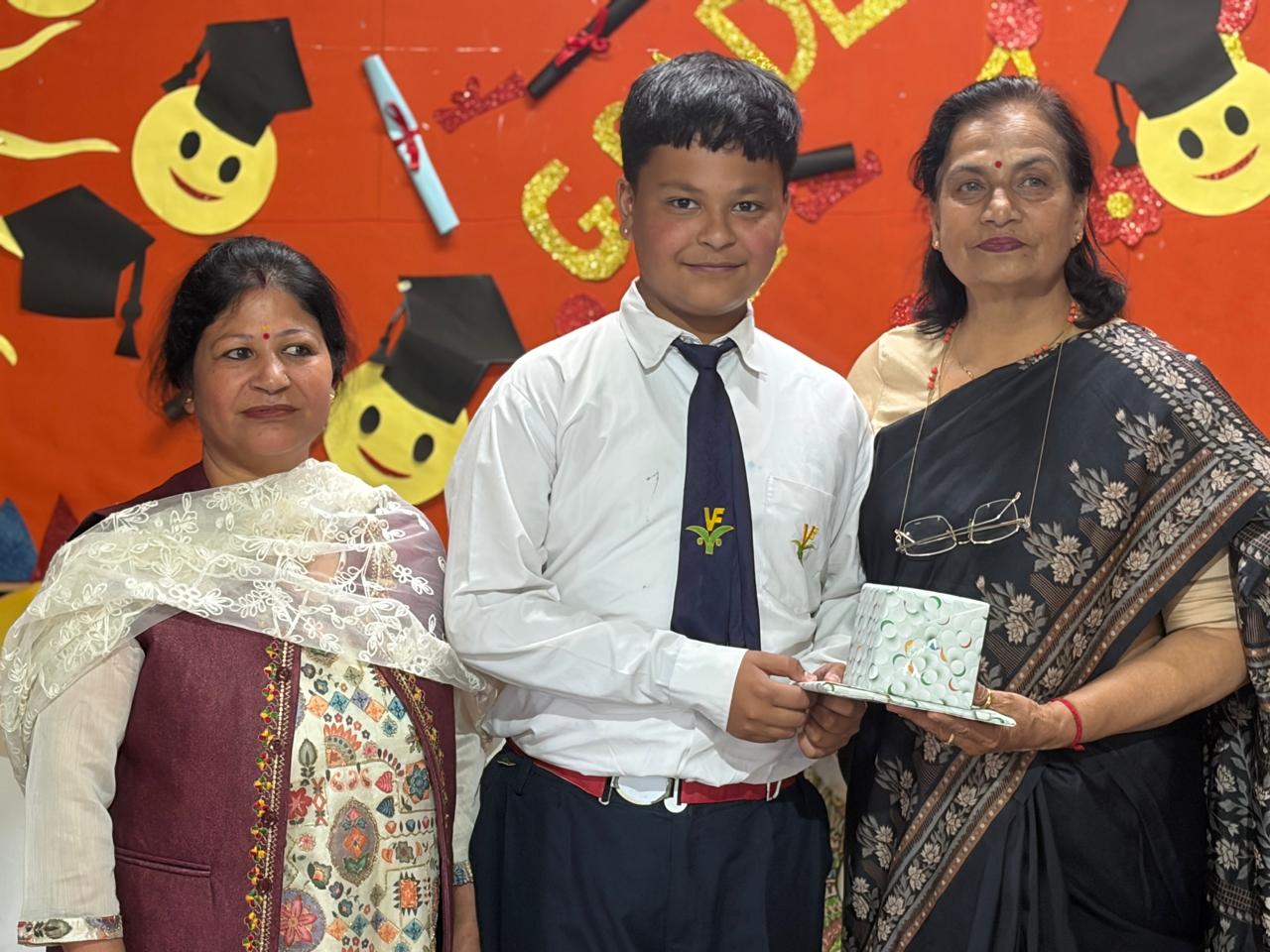 The programme then proceeded to the Prize Distribution Ceremony. The awards were presented in a systematic sequence, beginning with Playway III, followed by Class V and Class VIII. Prior to each category, outstanding students were honoured for their exceptional performance.
