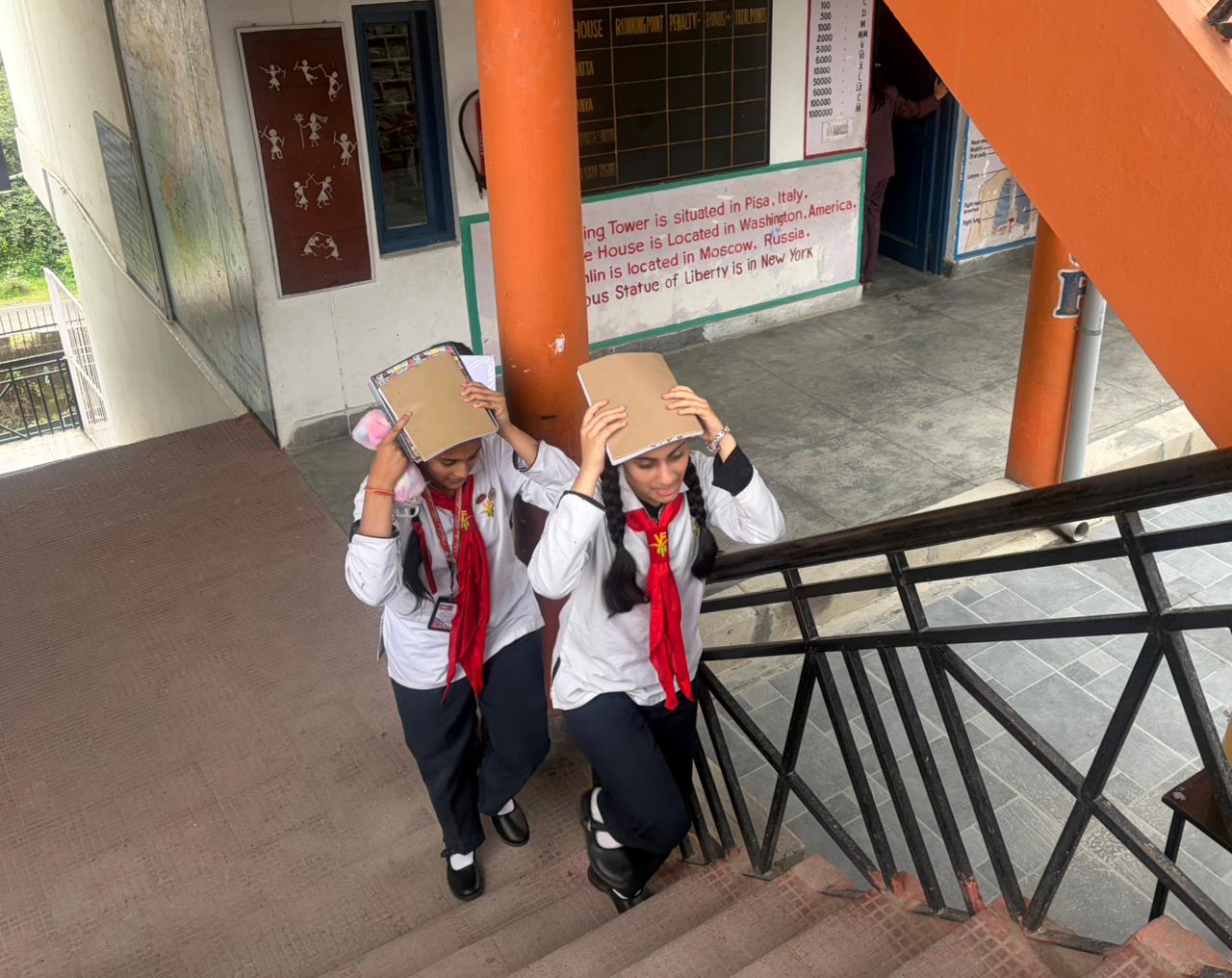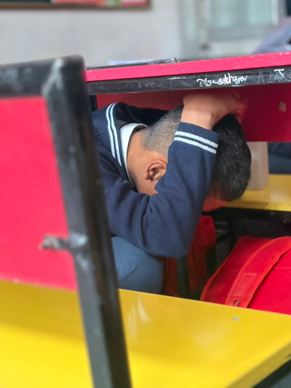 To make the learning more practical, a “Shake Out Drill”was conducted in the school. Students and staff actively participated and practiced the safety steps of “Drop, Cover, and Hold.” The drill helped them understand how to respond calmly and quickly during an earthquake.